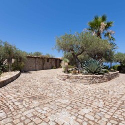 All’esterno zona pranzo di pertinenza della sala da pranzo e cucina, fresca ed ombreggiata da splendidi alberi di mandorlo, zona piscina con chaise longue, svariati punti d’appoggio/sedute e gazebo coperto, e infine diversi angolini in cui rilassarsi sfruttando la rotazione del sole attorno alla casa durante il giorno.